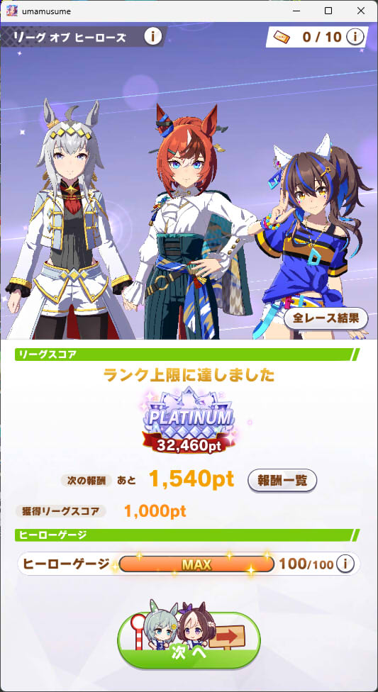 /主にスタミナ勝負を考慮して[スタミナ値1500+緑]以上(※回復分無し)が目標値。