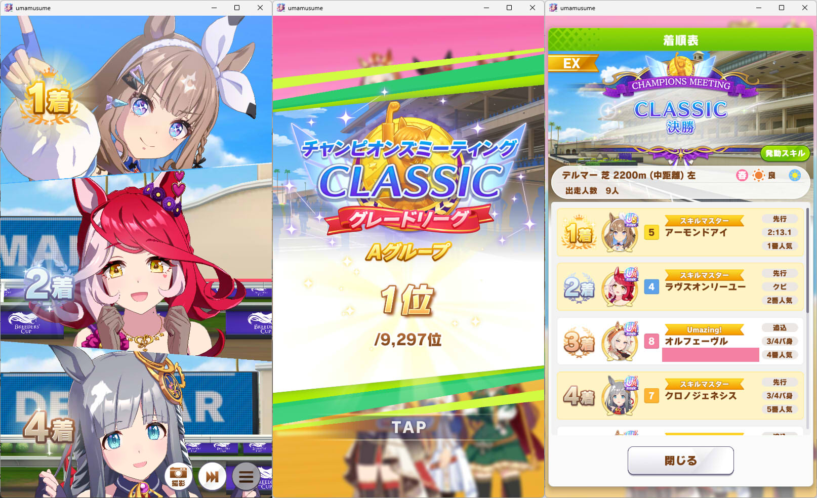 ・最終コーナースキルが1秒ちょっと遅れる(他加速がもう少し重要)